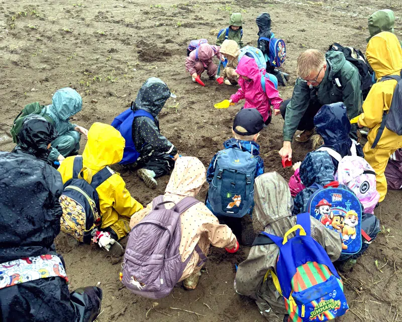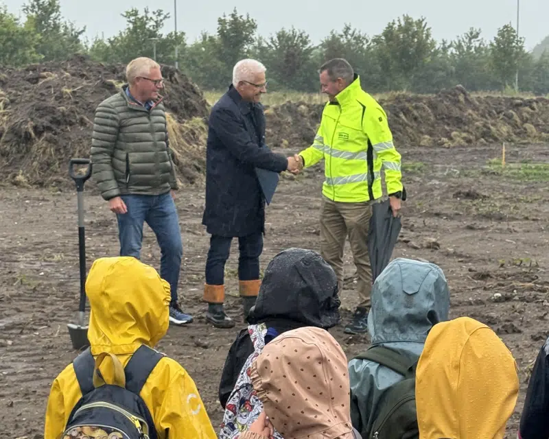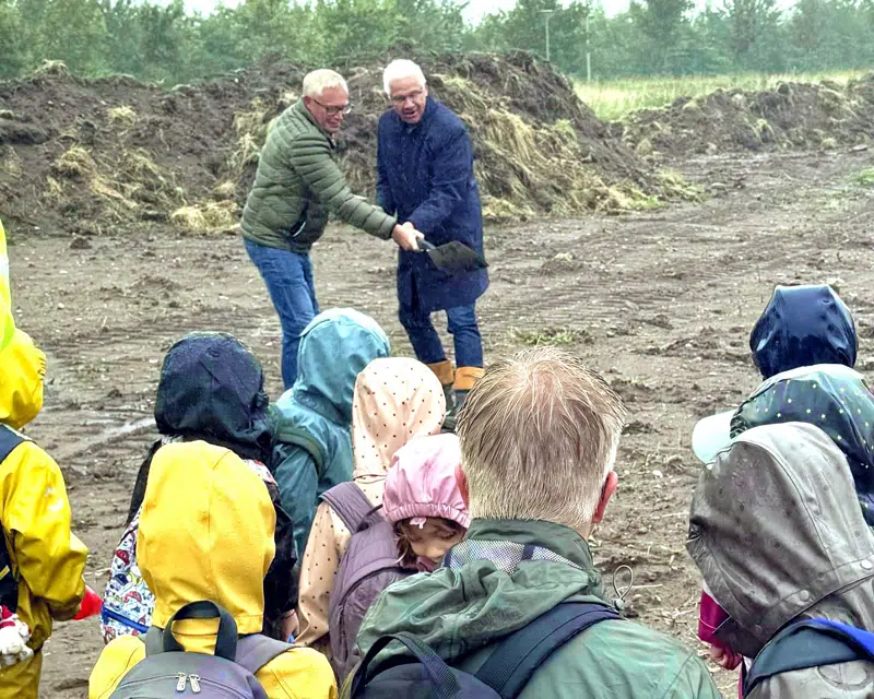 Det blev en våd men god dag, hvor både borgmester, udvalgsformand og børnene fik gravet de første spadestik.