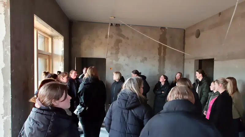 Den 6. marts 2025 bød Vejen Kommune de kommende medarbejdere velkommen til en rundvisning i det nye Børnehus Kongehøj. Selvom byggeriet endnu ikke stod helt færdigt, gav besøget et klart indtryk af husets rammer og de pædagogiske muligheder, som de nye lokaler vil understøtte.